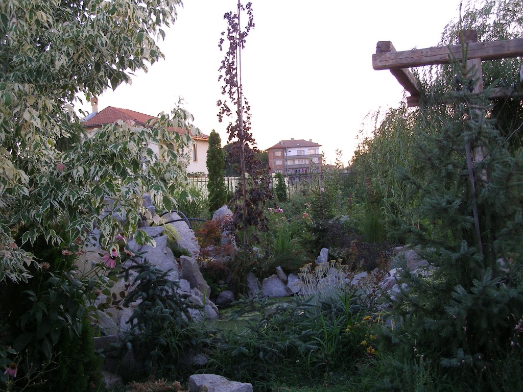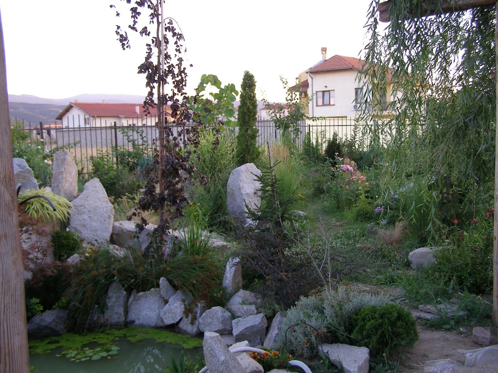Има нови иглолистни около новото езеро. Рибките в него са малки и езерцето се напълни с жабки и попови лъжички. Наложи се да се източи част от него, за да ги изгребваме: